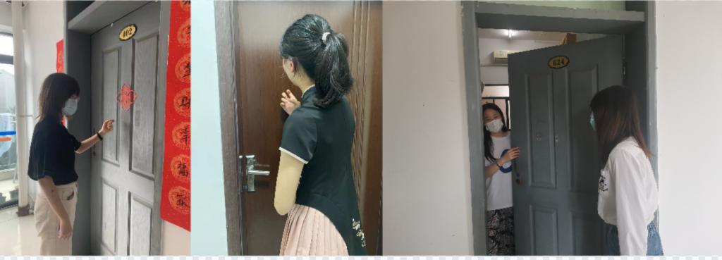 在本次志愿服务中,院学生会主席庹雪婷同志与团支部书记李紫微同志负责提醒兰园四幢女生宿舍四楼的同学,学院宣传委员白玉洁同志与院学生会学习部部长郭薇同志负责组织六楼的同学。四名学生干部没有任何拖沓,一个宿舍接着一个宿舍地敲门提醒同学下楼集合。同学们有序的集结与核酸检测迅速、高效的完成标志着本次任务顺利圆满完成。
