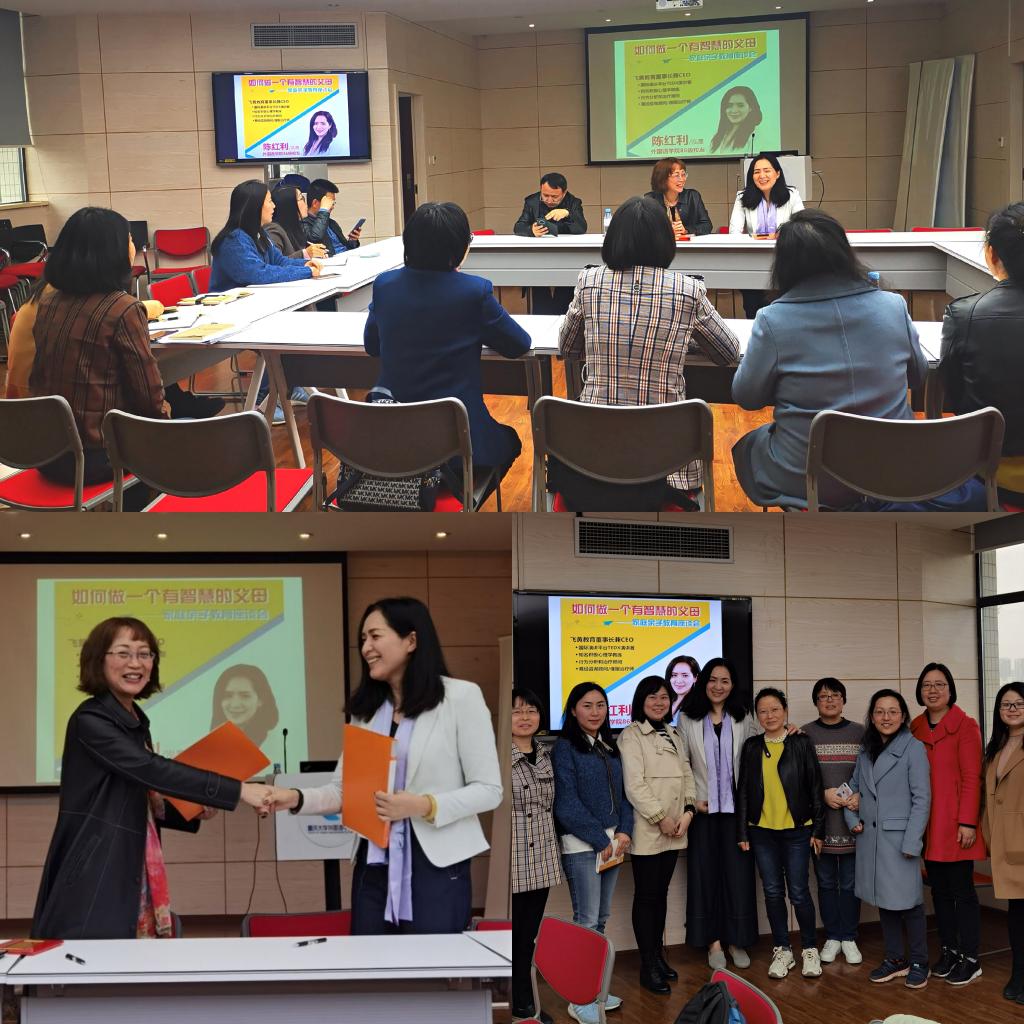 2021年3月25日,外国语学院501学术报告厅,学院分工会邀请我院86级校友、飞黄教育董事长兼CEO陈红利女士,同我院20余名教职工召开了“如何做一个有智慧的父母——家庭亲子教育座谈会”。外国语学院党委书记欧玲、党委副书记魏世平出席了本次座谈会。