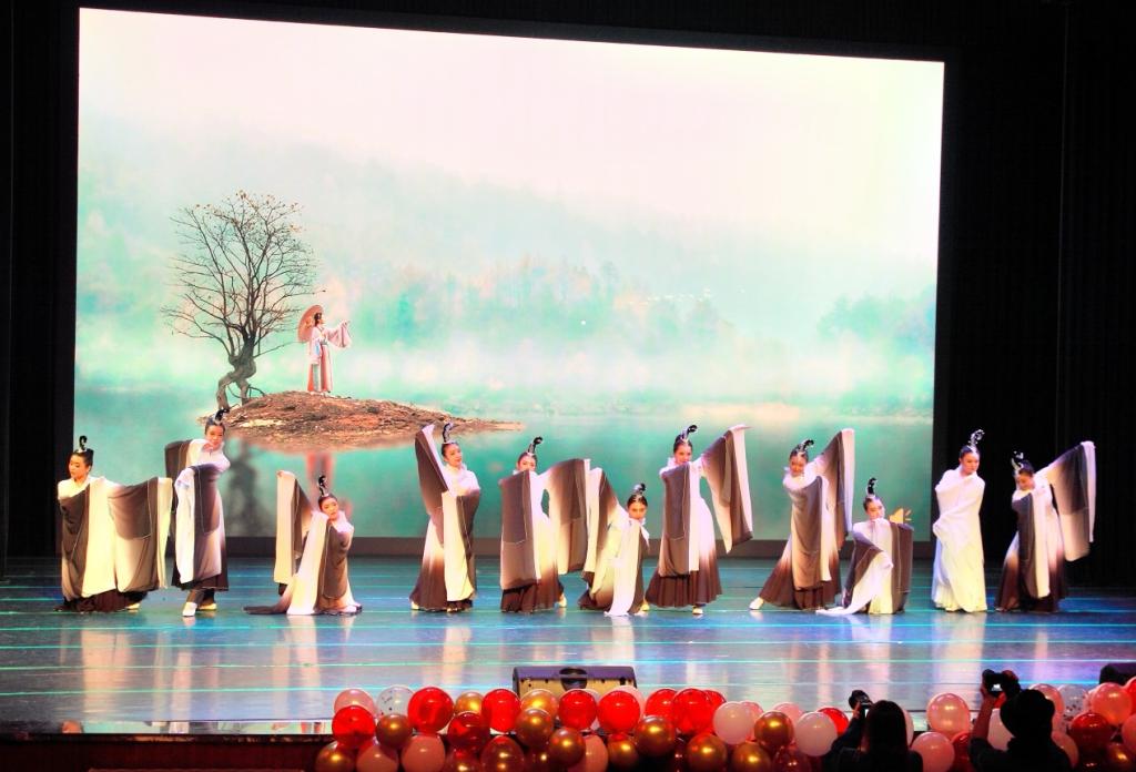 2021年12月18日晚7点,重庆大学外国语学院主办的第二十一届外语文化节闭幕式暨外国语学院迎新晚会在虎溪校区小剧场隆重举行。重庆大学校工会教职工舞蹈协会的11名成员历时三个多月的辛苦训练和打磨,在我院工会文体委员、德语系老师吴娟的带领下,完美呈现了以诗经为创作素材的女子古典群舞《白纻舞•在水一方》,塑造了行走在水边的江南女子的艺术形象,获得了在场师生观众的热烈掌声和广泛好评。