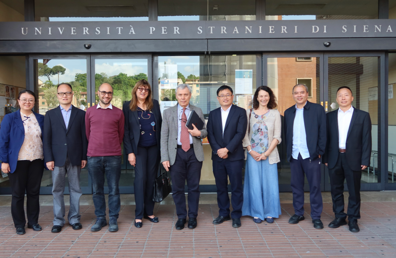 4月30日下午,莫启扬教授率团访问锡耶纳外国人大学,与副校长Mauro Moretti教授、对外意大利语教育中心主任Pierangela Diadori教授、中文课程负责人Anna Di Toro教授、Andrea Scibetta教授等四位教授领导进行了会面。会谈中,双方就国际中文教育硕士双学位项目进行了深入探讨,并达成了共识。双方同意继续推动项目落地,并拟签署学术交流协议及中方派遣国际中文教育专业硕士生至锡耶纳外国人大学实习的协议。