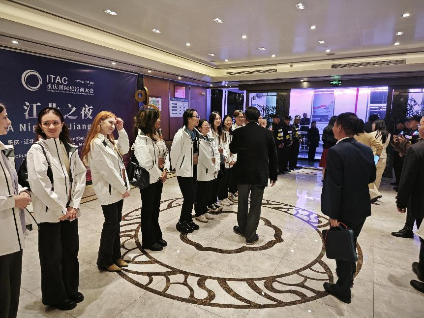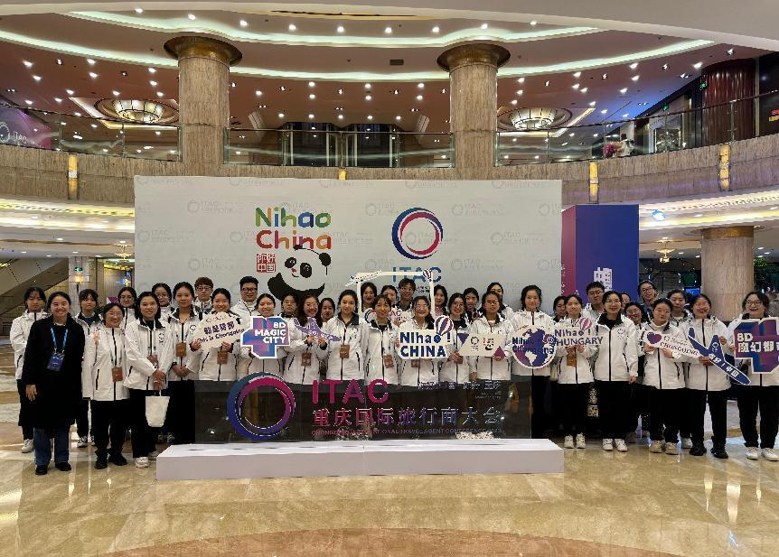 2023年11月20日-2023年11月23日,重庆国际旅行商大会在江北区隆重召开,本次大会由重庆市文化和旅游委、江北区人民政府主办。重庆大学外国语学院组织59名志愿者(其中包含7名留学生志愿者)到岗负责大会的接待、签到、指引、会务、引导等工作,为国际盛会贡献外院力量。