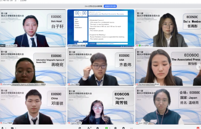 2022年4月9日,随着闭幕式会议房间关闭,第十届重庆大学模拟联合国大会在线上会议室圆满结束。