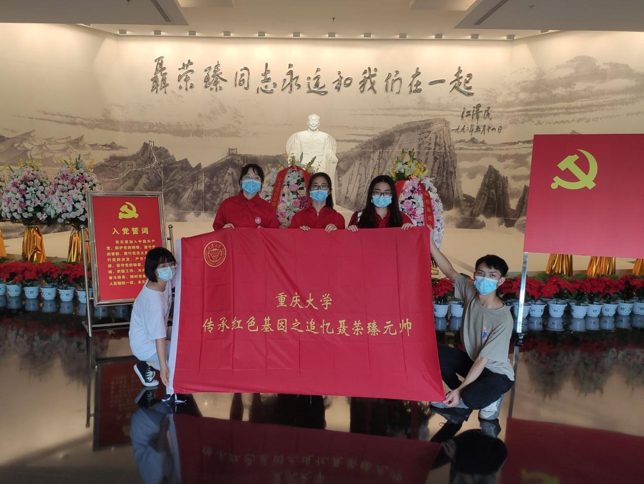 2022年7月27日,重庆大学“无问西东”社会实践团前往重庆市江津区聂荣臻元帅陈列馆开展暑期社会实践。实践团由外国语学院李思嘉同学牵头组织,成员有来自化学化工学院的蒋媛媛,计算机学院的王进恒,本科生院的宋雨薇和艺术学院的闫昊华同学。实践团队成员通过志愿讲解员的详细讲述,学习聂帅的生平事迹、抗战历史,传承红色精神,体现重大学子一心向党的积极风貌。