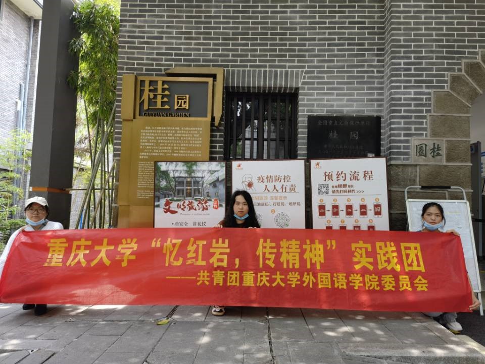 2022年7月20日至21日,重庆大学外国语学院“忆红岩,传精神”实践团前往郭沫若旧居、桂园、周公馆、冯玉祥旧居和白公馆开展暑期社会实践活动,通过参观抗战名人旧居,学习名人英勇事迹形式,深刻体会了中国共产党人的革命精神。实践团成员们深刻领悟到中国共产党人的崇高理想和坚定信念,应当由我们青年在新时代继承和发扬。