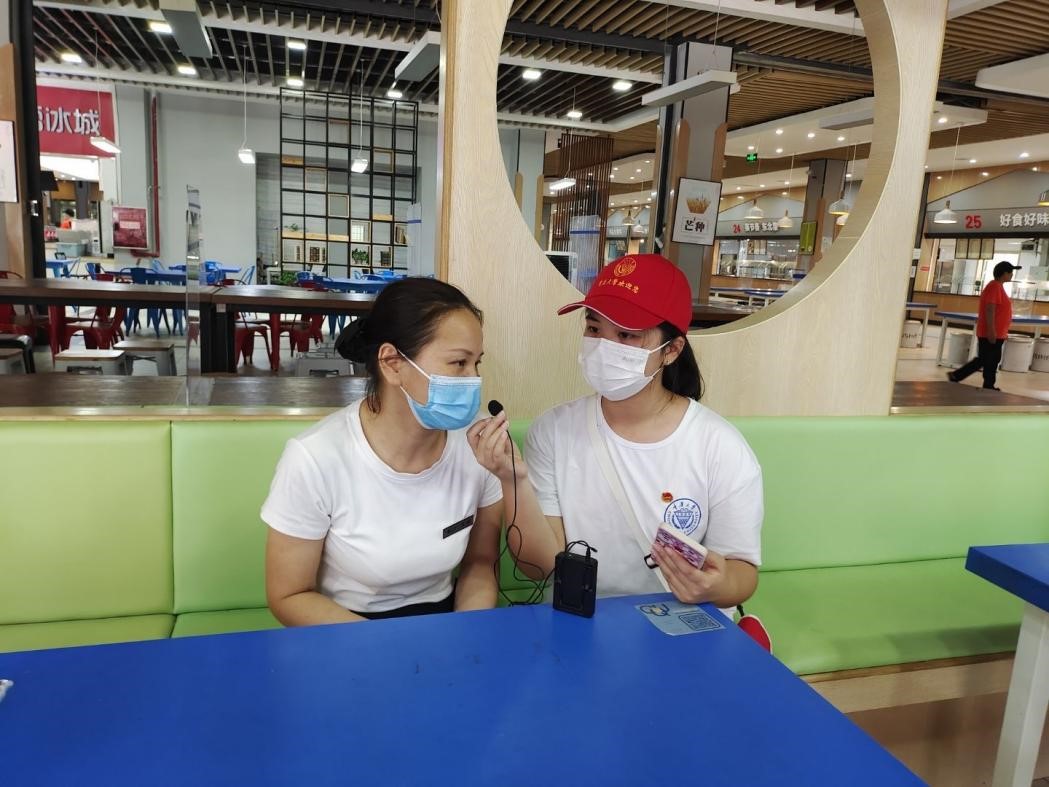 在实践团对校园进行实地考察期间,团队成员分别对重庆大学外国语学院党委书记欧玲、党委副书记魏世平、团委书记汪俣婧等领导老师进行了院校的防疫政策咨询。除此之外,实践团还对2020级本科学生王颖和校园内第一食堂的食品安全员叶春明等工作人员进行了随机采访,从各个层面深入了解重庆大学的防疫举措以及其取得的成效。