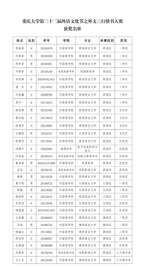 此次大赛旨在丰富全校学生在疫情封控期间的校园生活,增强学生外语表达能力,活跃校园外语学习氛围。一篇篇饱含浓情蜜意的诗,在这个高度数字化的时代为初入寒冬的校园带来了暖意,温暖的情谊陪伴着学子们共同度过2022年的尾声。至此,重庆大学第二十二届外语文化节系列活动之外文三行情书大赛圆满结束。