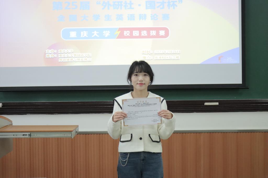 经过三个赛段的激烈角逐后,大赛评选出2名特等奖、2名一等奖、4名二等奖、8名三等奖、21名优胜奖。其中,外国语学院2020级英语专业本科生杨宇瑄和2019级英语专业本科生周佳蕾荣获特等奖。外国语学院2021级外国语言文学研究生庹雪婷和2020级英语专业本科生吴代杰获得一等奖。外国语学院2019级英语专业本科生黄梦遥、2019级博雅学院法学专业本科生黄经宸、外国语学院2022级外国语言文学研究生贾梦涵、物理学院2021级应用物理专业本科生艾尔斯等4位选手获得二等奖。外国语学院2021级英语专业本科生郭思雨、2019级英语专业本科生刘昳、2020级英语专业本科生李敏仪,物理学院2020级电子信息科学与技术专业本科生伊丽达娜,建筑城规学院2022级建筑类本科生李祐麟、2019级城乡规划专业本科生陈昊隆、2020级建筑学专业本科生马雨萌、2020级建筑学专业本科生孔馨怡等8位选手获得三等奖。