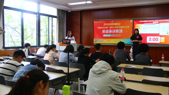 2024年5月30日下午,2024“外研社·国才杯”“理解当代中国”全国大学生外语能力大赛英语演讲赛项校选赛在重庆大学虎溪校区第一教学楼D1326、D1327、D1330进行。本赛项由重庆大学主办、重庆大学外国语学院承办、外语演讲与辩论协会和英语协会协办,吸引了全校17个学院近30个专业的学生参赛。