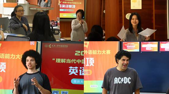 大赛分英语专业组、非英语专业组分场开赛。英语专业组由外国语学院英语系盛荔、卢敏、邹虹瑾等3位老师担任比赛评委,非英语专业组由外国语学院大外中心课程组王旭、熊菲、刘琳、李筱梅、尹晓宇以及外教Enrico Mancarella、Joshua Mattei-Lownes等7位老师担任比赛评委。