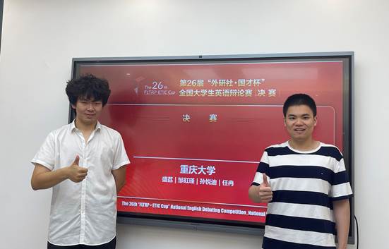 我校两位辩手经历了区赛的沉淀打磨,面对国赛中更具挑战的辩题谨审慎析,化繁为简、稳扎稳打,凭借扎实的辩论技巧和严谨的逻辑思维与对手进行交锋切磋、据理辩驳,展现出较强的英语语言综合运用能力和夯实的知识储备。二人经过层层较量,凭着默契的配合,最终以全国三等奖的成绩收官本届大赛。