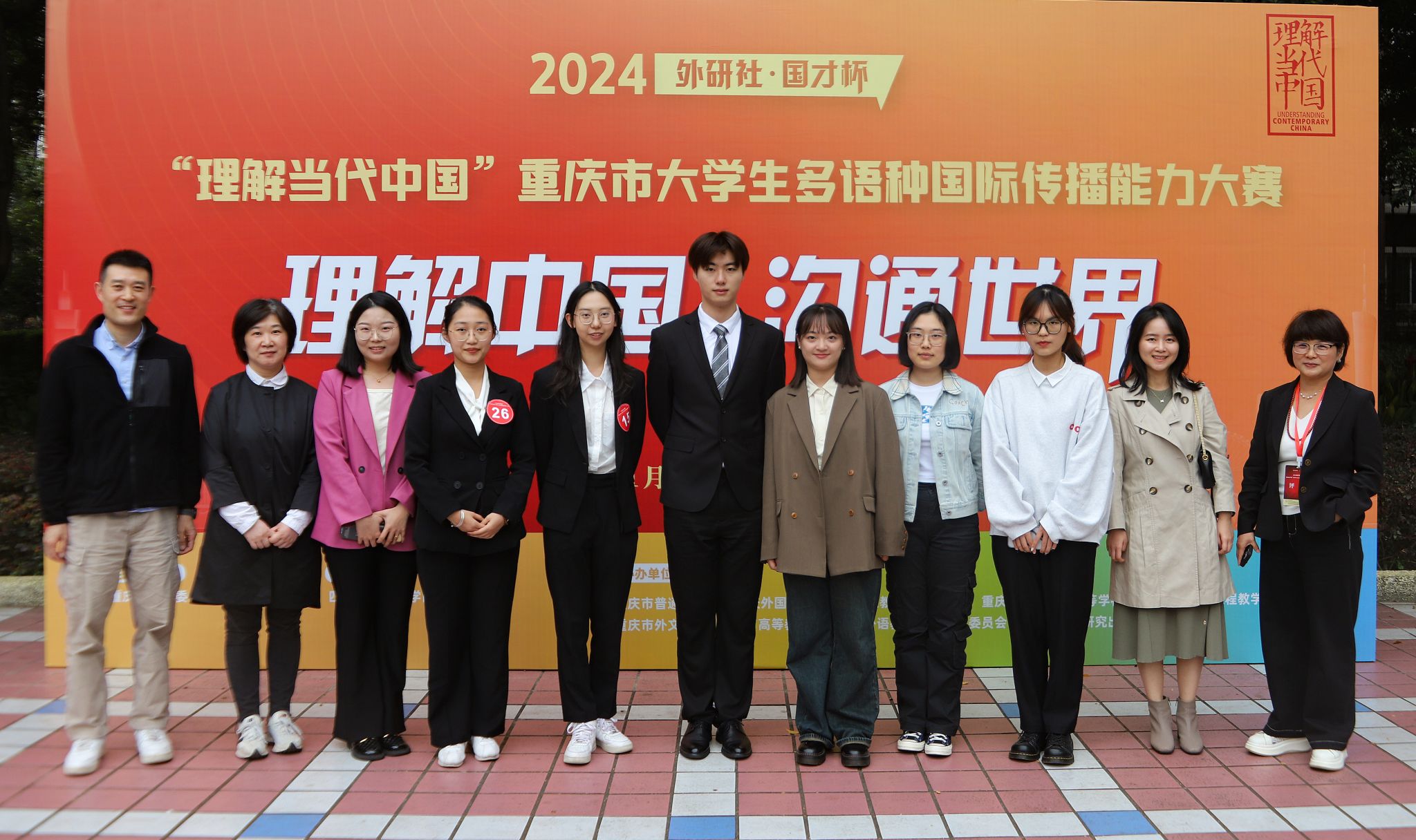 本届大赛由重庆市教育委员会主办,重庆市普通本科高等学校外国语言文学类专业教学指导委员会、重庆市普通本科高等学校重庆市公共基础课程教学指导委员会、重庆市外文学会、重庆市高等教育学会大学外语教学研究专业委员会、外语教学与研究出版社协办,四川外国语大学商务英语学院承办。英语组演讲、口译、综合能力、笔译四赛项累计吸引了来自市内28所本科院校的三百多名选手齐聚一堂比拼切磋。我校累计17人次参加各项比赛,荣获金奖5项、银奖10项、铜奖2项。