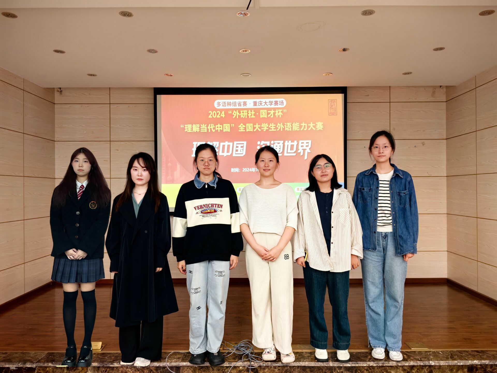 经过两个多小时的激烈比拼,外国语学院2022级德语专业本科生付雯蕾和2021级德语专业本科生彭俊洁获得德语赛项银奖;外国学院2022级日语专业本科生周慧娟、陈依婷分别获得日语赛项银奖、铜奖;外国语学院2021级英语专业本科生曹越、段美伊获得法语赛项铜奖;美视电影学院2022级播音与主持艺术专业本科生刘家羽获得俄语赛项铜奖。