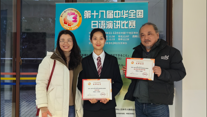 此次吴笑恬同学在西南赛区斩获佳绩,赢得奔赴东京参加全国总决赛的宝贵入场券,承载的不光是个人的不懈努力与梦想追求,背后更凝聚着重庆大学日语教学团队的心血与付出。愿吴笑恬同学继续带着这份底气与从容,在国赛舞台上稳扎稳打、沉着应战,续写重庆大学以及西南地区日语教育教学的辉煌篇章,为热爱日语的莘莘学子点亮前行灯塔。