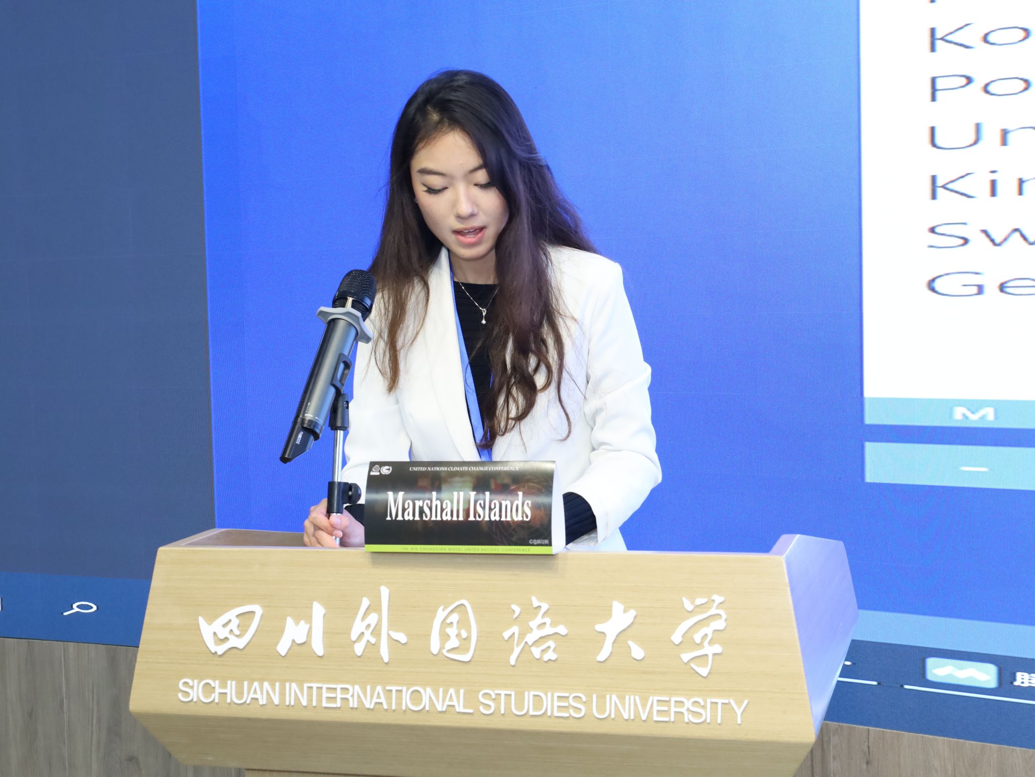 刘漫钰与刘子夏在联合国气候变化大会(UNCCC,United Nations Climate Change Conference)议题“帮助各国家发展更雄心勃勃的自主贡献的策略”中,作为马绍尔群岛代表和澳大利亚代表参加会议,积极与其他代表团协商,促进更多的参会代表达成共识,针对如何完善自主贡献机制、制定新的集体量化目标等问题展开积极讨论,并在会中与其他代表团充分交换意见,推动全球气候变化目标走向落实。