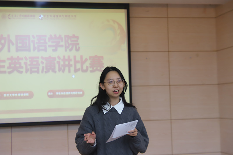 近日,外国语学院2024年新生英语演讲比赛在重庆大学虎溪校区外国语学院楼501进行。本次比赛由重庆大学外国语学院主办、学生外语演讲与辩论协会承办,外国语学院英、德、日各专业2024级本科生参赛。比赛邀请了外国语学院英语系盛荔、邹虹瑾、James Atkinson三位老师和孙奕婷同学担任评委。