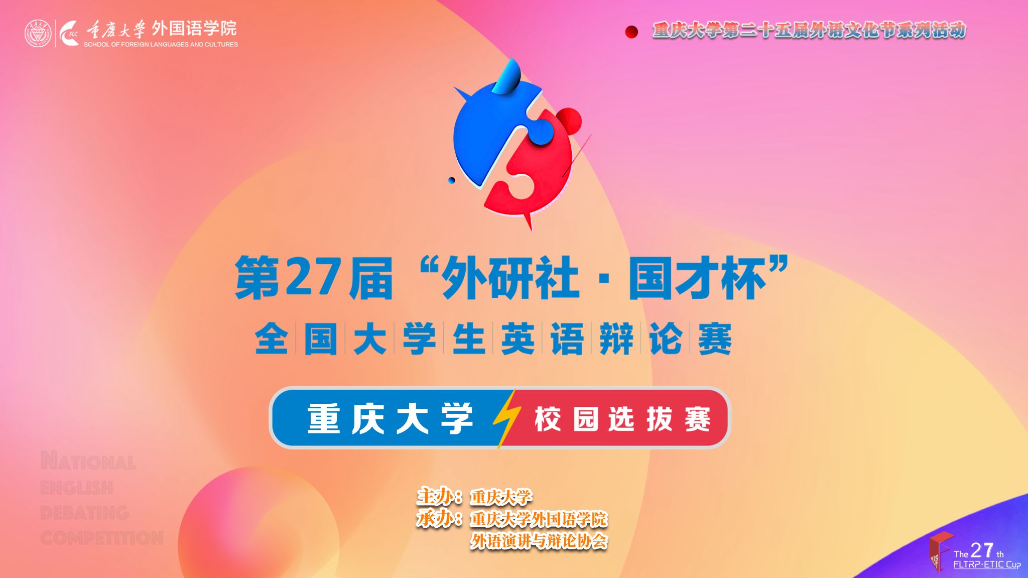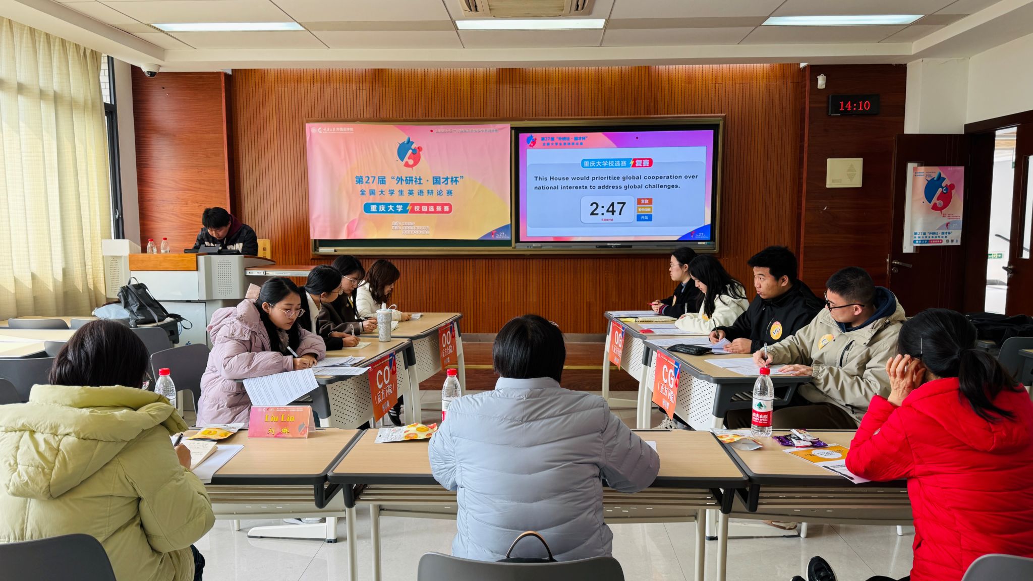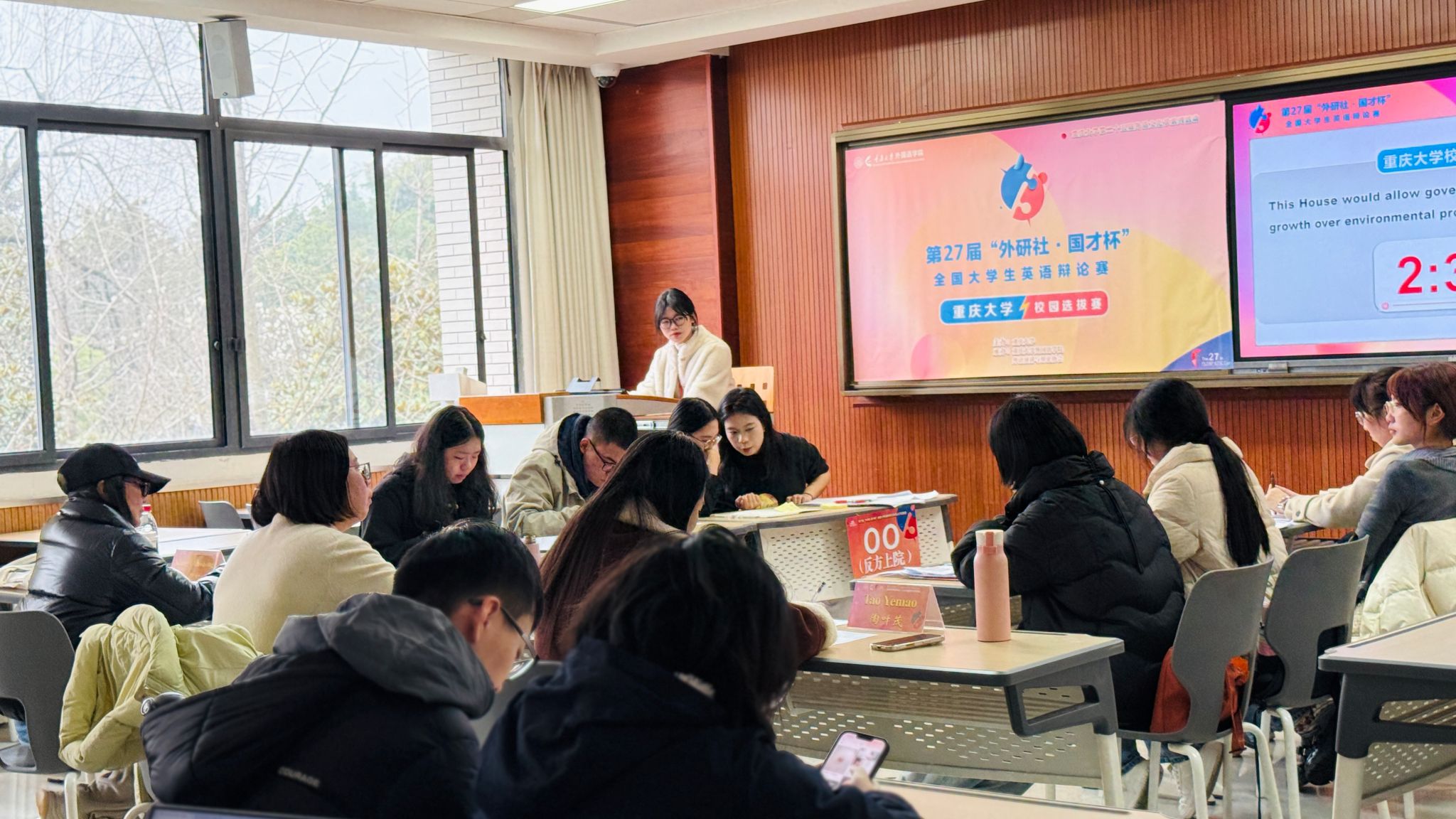 2025年3月9日下午,第27届“外研社·国才杯”全国大学生英语辩论赛重庆大学校选赛在重庆大学虎溪校区第一教学楼圆满结束。本次校选赛由重庆大学主办,重庆大学外国语学院承办,学生外语演讲与辩论协会协办,吸引了全校近30个学院、60余个专业(类)的92支队伍参赛。