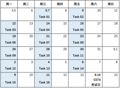 1.在活动期间内(5月7日7:00-6月13日23:59)每周一、三、五7:00系统自动发布1个任务;完成指定任务,可获取训练星和学习积分。