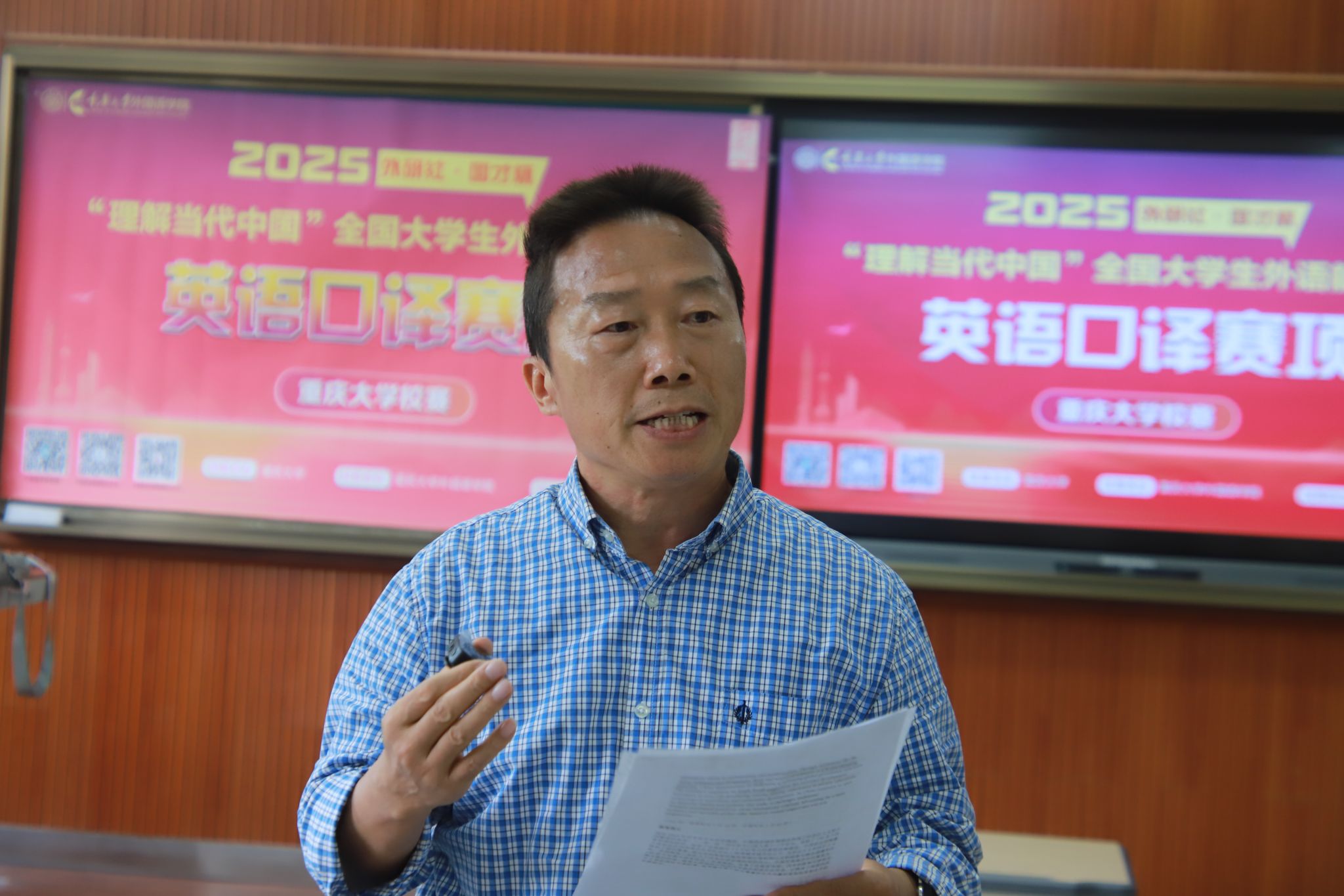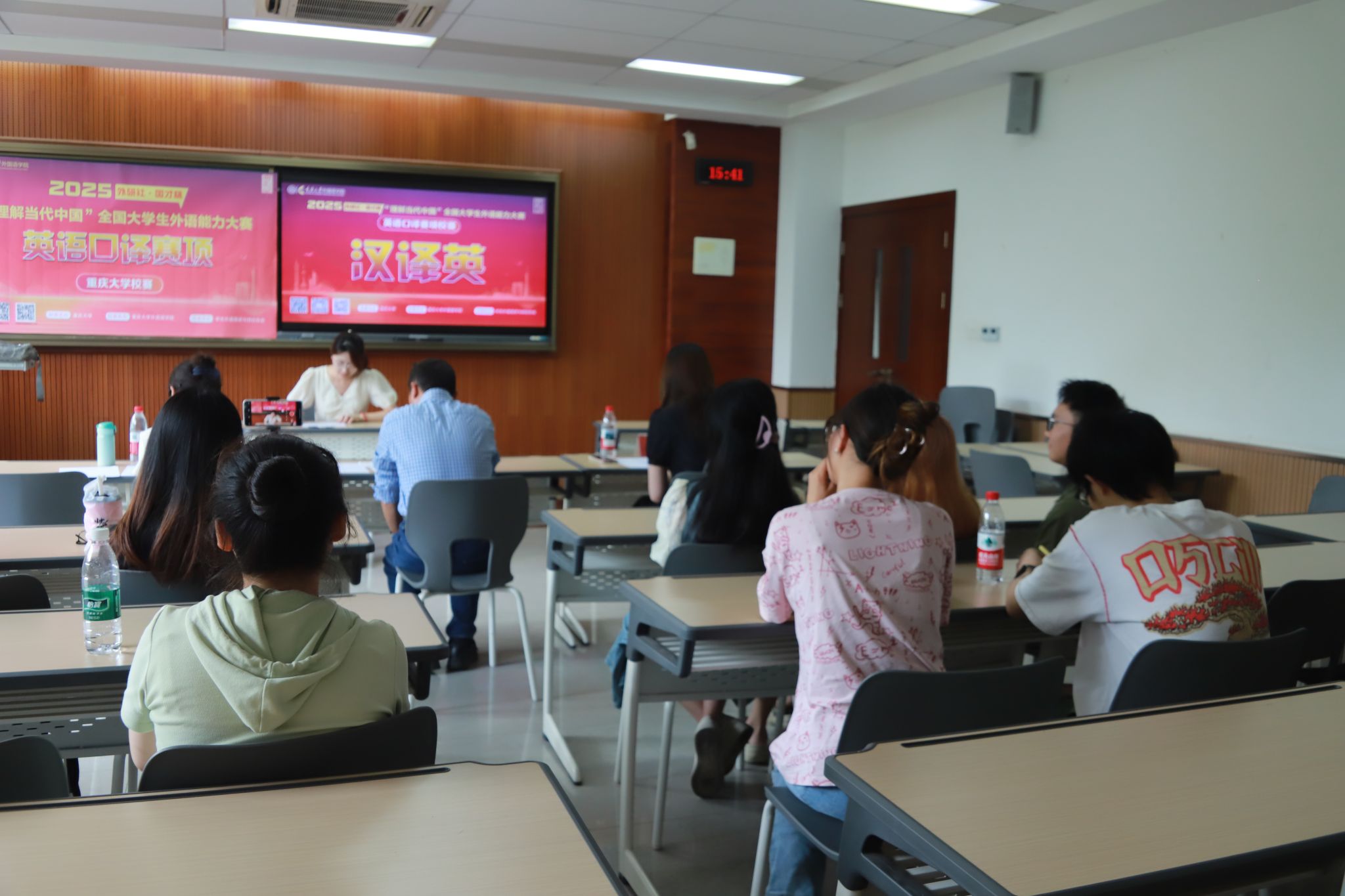 2025年6月5日14时,2025“外研社・国才杯”“理解当代中国”全国大学生外语能力大赛英语口译赛项重庆大学校决赛在重庆大学虎溪校区第一教学楼D1215教室举办。本场比赛由重庆大学主办,重庆大学外国语学院承办,学生外语演讲与辩论协会协办,吸引了全校10个学院12个专业(类)的学生积极参与。