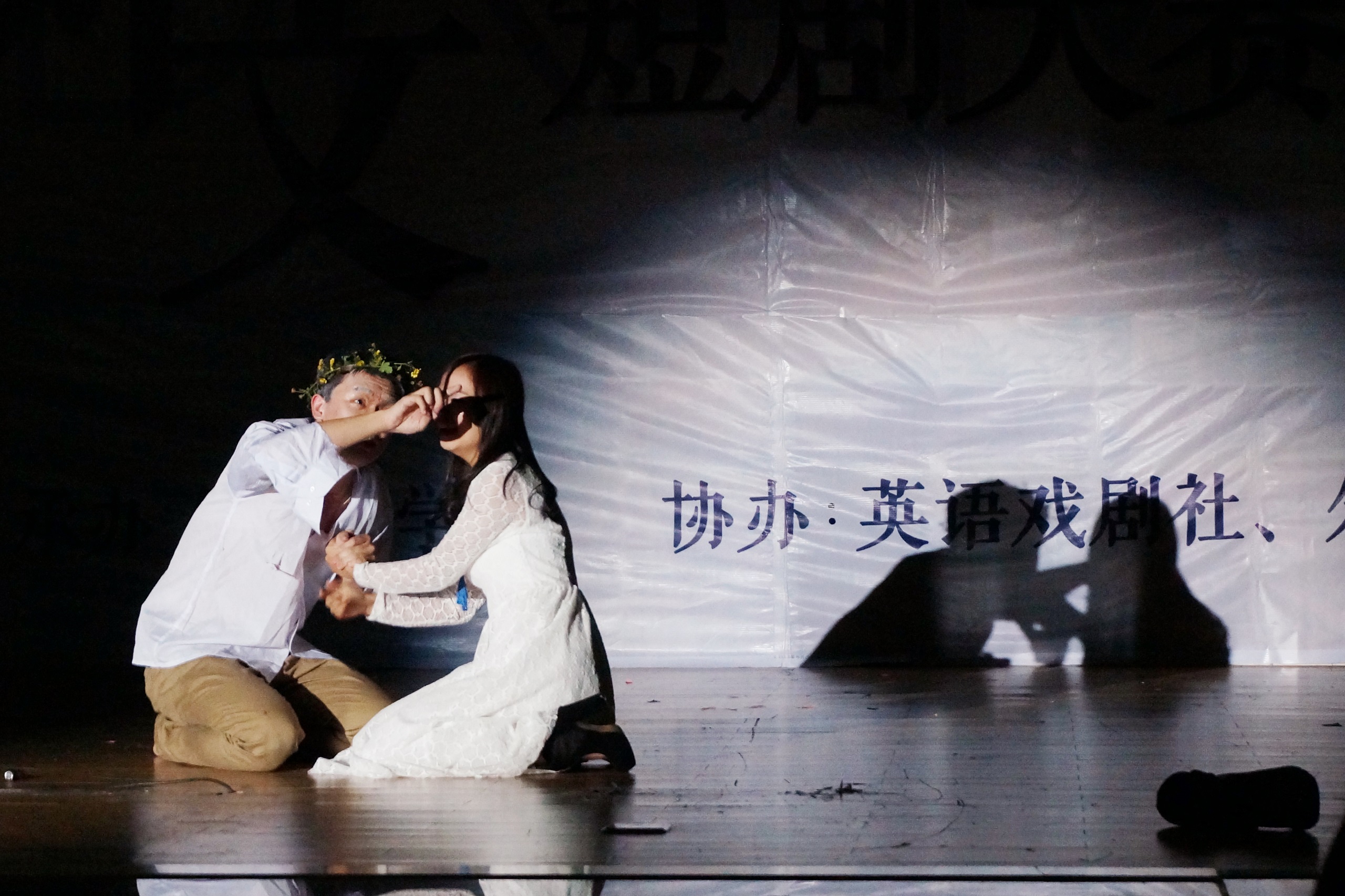 接下来是来自2013级英语3班的同学,他们以标准流利的口语和引人入胜的表演将李尔王由国王沦落为乞丐的一生淋漓尽致地演绎出来,他们置身剧中,把国王的悲欢离合,喜怒哀乐毫无保留地奉献给观众,高亢激昂的对白牵动着每位观众的心。国王抱着小女儿痛哭的画面,在场的观众都为之动容,灯光与表演相得益彰,将比赛气氛推向高潮;2014级英语2班的同学演绎俄狄浦斯王杀父娶母这一悲剧,引得观众唏嘘不已;2013级英语2班的同学的表演展示了人性中的民主和法制精神,以模拟法庭的形式,陪审成员间的唇枪舌剑,赢得观众的阵阵掌声;最后,由2013级英语1班为大家演绎当人们面对命运的挑战,是顺从还是反抗的俄狄浦斯王,着实吊足了观众的胃口,激昂的乐曲加之精彩的表演,为比赛画上了圆满的句号。