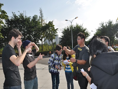 2013年11月24日星期日下午两点由重庆大学外国语学院主办的Amazing Race(极速前进)在重庆大学虎溪校区如期举行。本次活动共有两轮:校内地点寻找和小游戏比赛。