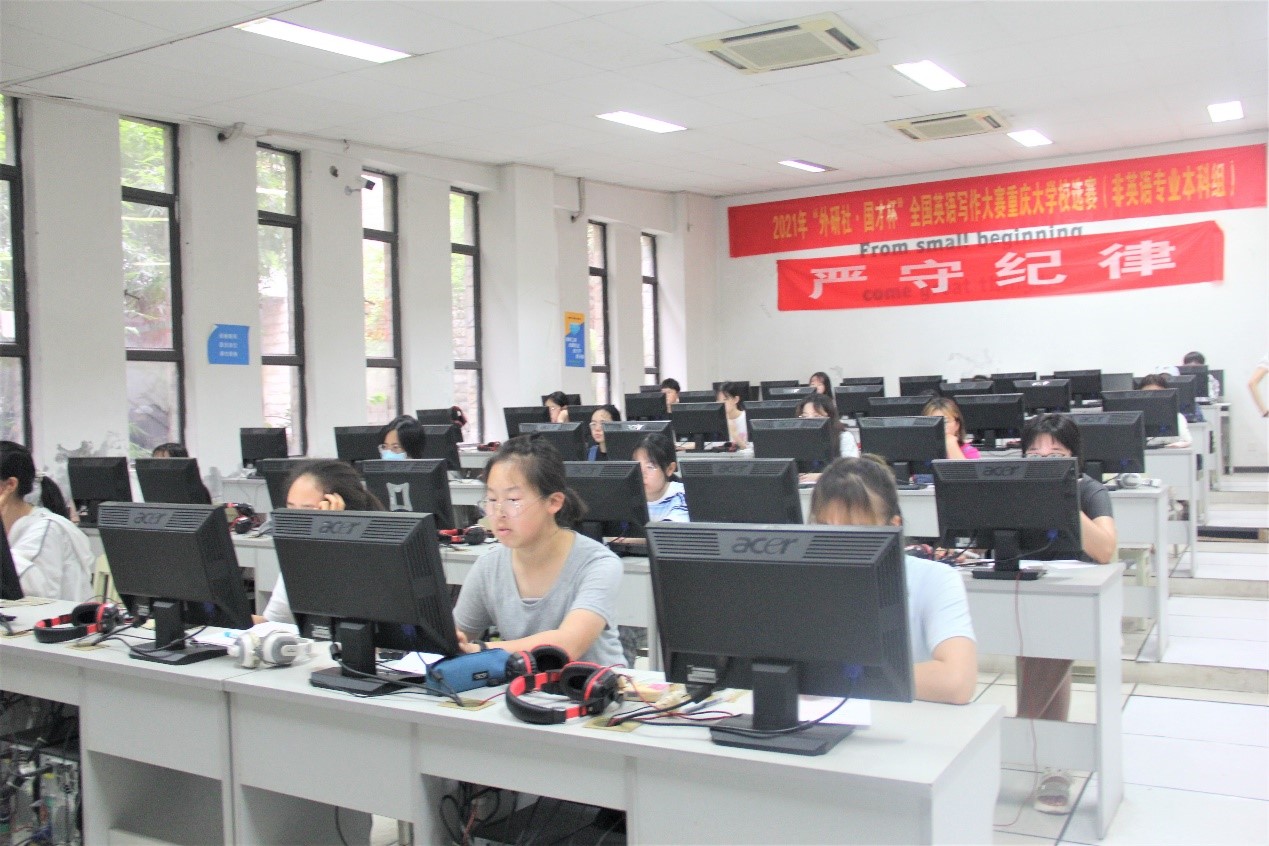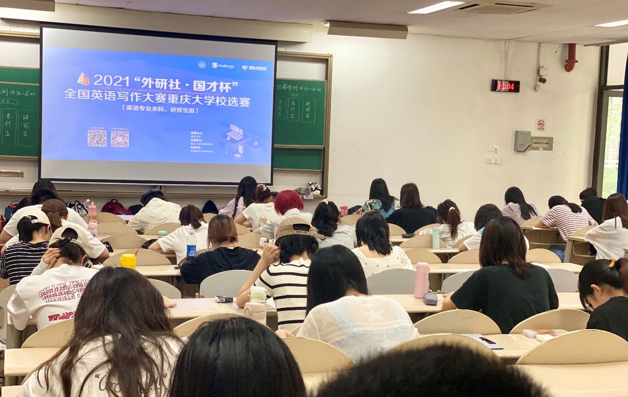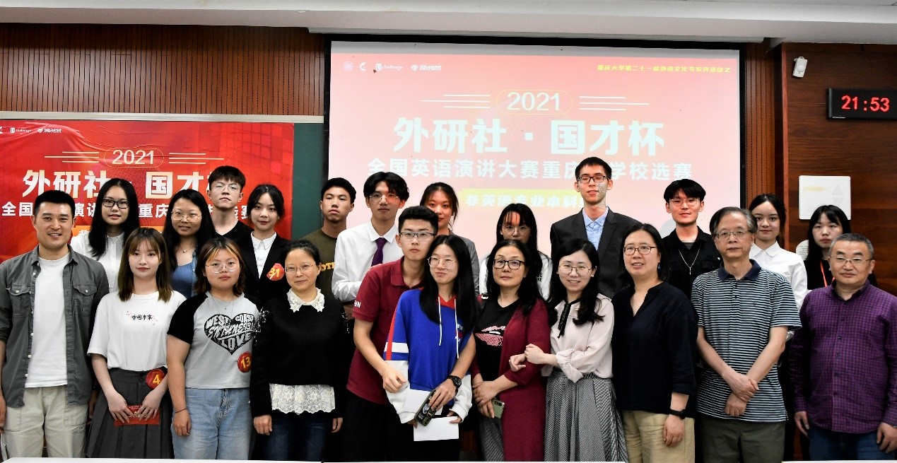 2021年6月中旬,“外研社·国才杯”全国英语演讲、写作、阅读大赛重庆大学校选赛先后在重庆大学虎溪校区、A区分英语专业(本科、研究生)组、非英语专业本科组和非英语专业研究生组三个组别进行。本次赛事由重庆大学教务处主办、重庆大学外国语学院承办、学生外语演讲与辩论协会、英语协会协办。三大赛事累计吸引了全校34个学院100多个专业的本科生、硕士生、博士生近千人参赛逐鹿,253名选手突出重围,荣获奖项。