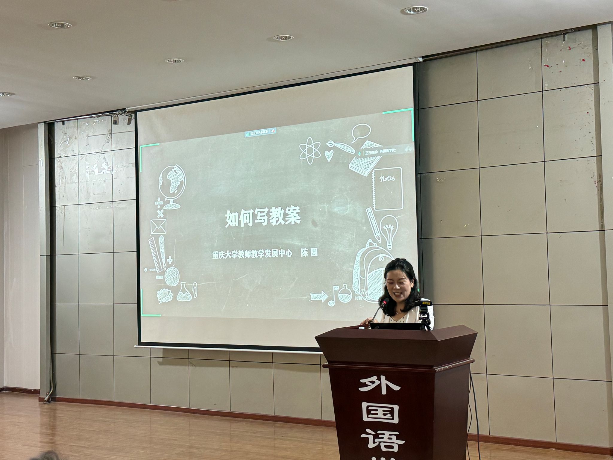 随后,教师教学发展中心的陈圆副教授就教案撰写进行了精彩的培训。陈圆副教授从教案的基本要素入手,结合具体案例,深入浅出地讲解了教案撰写的要点和技巧。她强调,一份好的教案应该具备清晰的教学目标、合理的教学内容和有效的教学方法,能够真正指导教学实践,提高学生的学习效果。