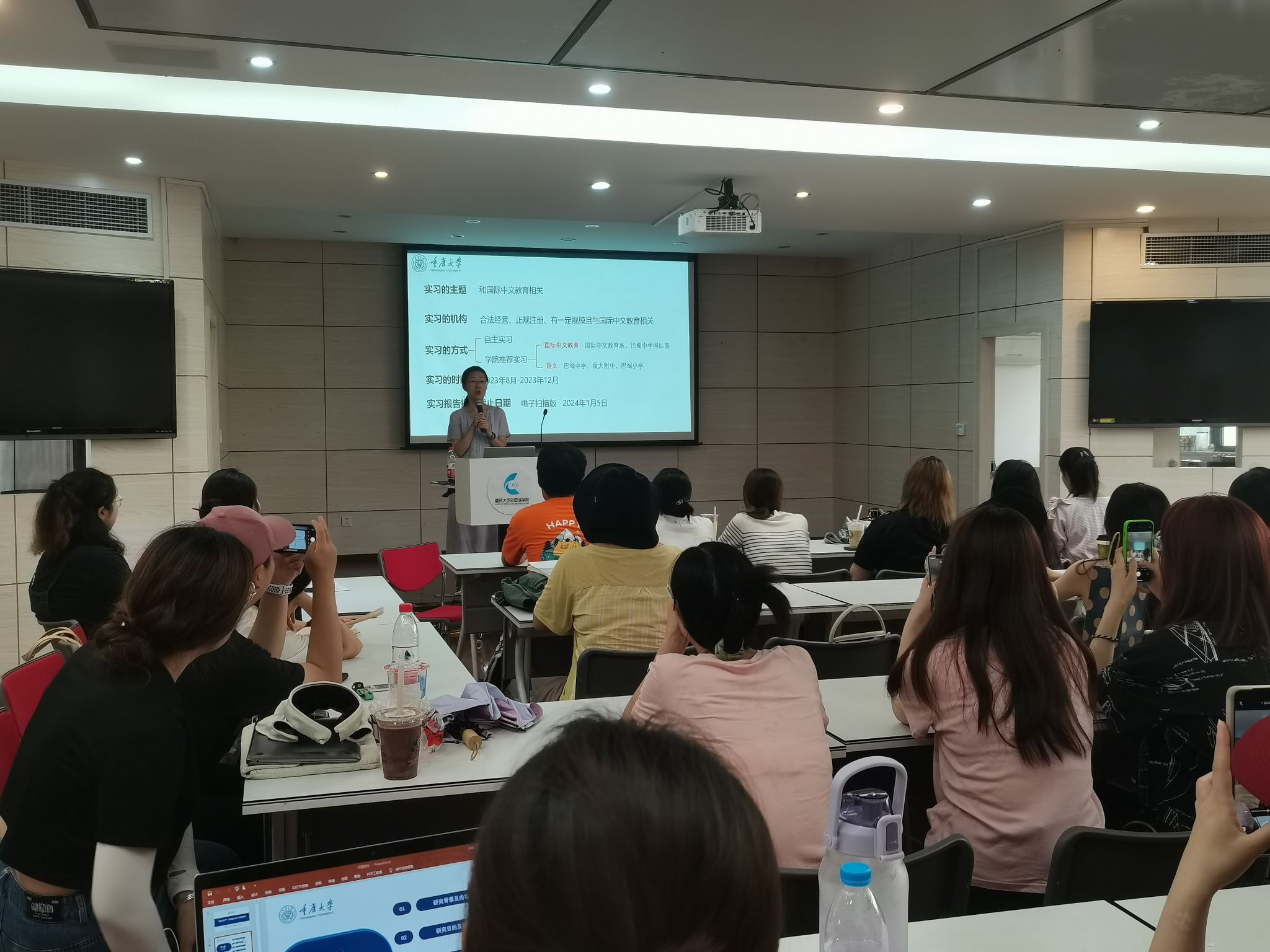 2023年6月28日14时,外国语学院2022级汉语国际教育专业硕士研究生在学院楼501召开2023年秋季学期实习动员大会。本次大会由汉硕专业负责人杜瑾老师主持,2022级全体汉硕专业学生参会。
