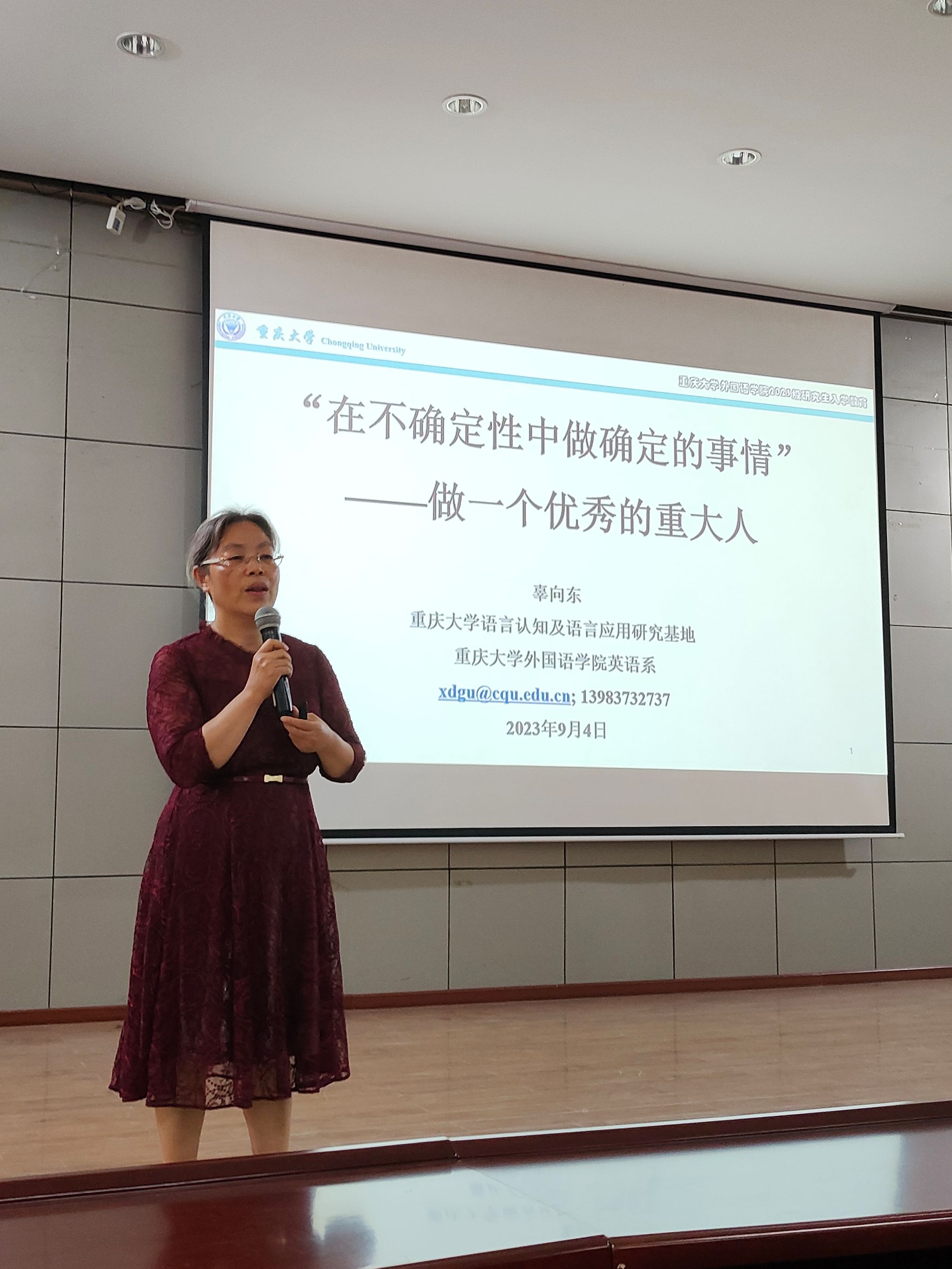 院党委书记欧玲首先向同学们致欢迎词。回溯学院的学科发展历程,外国语学院是一所具有深厚人文底蕴和良好学术声誉的学院,具有本硕博完整的培养体系和丰富的学术资源。她希冀同学们怀着“乐知者”的心态在这里博览群书,成为具有国际视野和领导才能的创新人才,真正做到吴宓先生所言“博雅之士,中西贯通,超凡脱俗。”