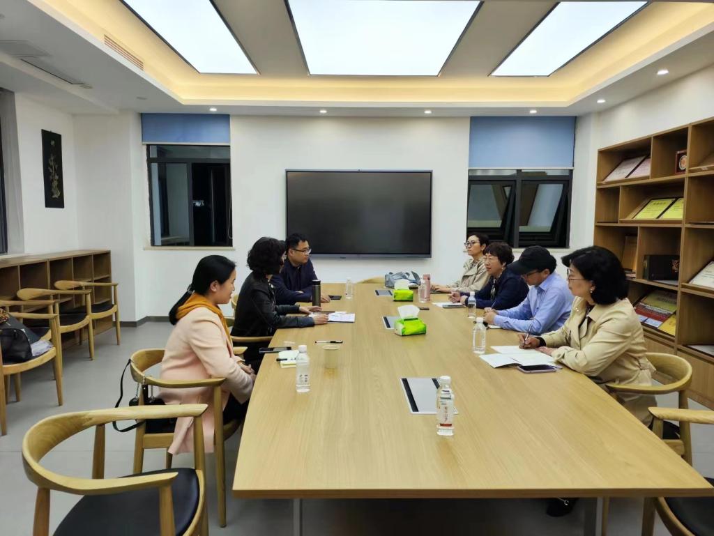 2023年4月7日天津大学外国语学院大学英语教学部主任江滨老师一行四人来我院交流访问。欧玲书记、莫启扬院长、温忠义副教授、冯玲老师与来访教师进行了交流座谈。