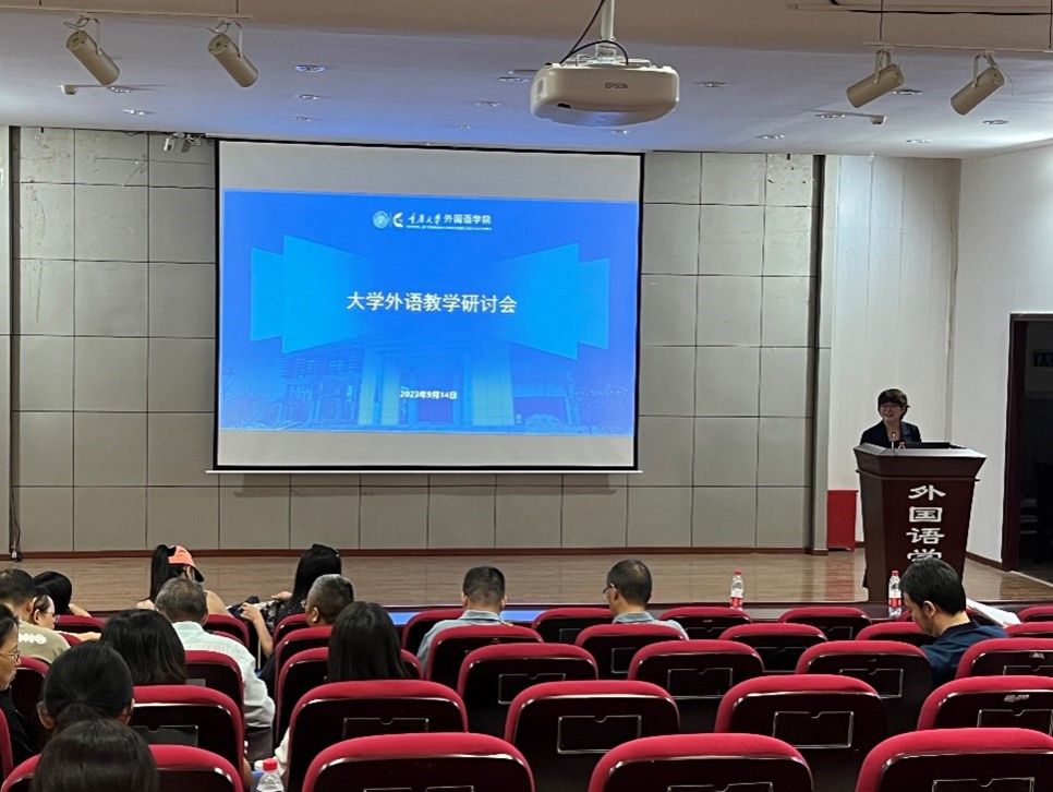 重庆大学外国语学院大学外语教育中心于2023年9月14日下午在学院多功能厅举行了“大学外语教学工作研讨会”。 外国语学院欧玲书记以及大学外语教育中心全体教师参加了此次会议,会议由李小辉副院长主持。本次教学工作会旨在总结我院大学外语教育教学创新及研究成果,探讨新形势下大学外语教学改革的新举措,促进大学外语各教学单位深化课程教学改革、加强教材及资源建设、加强教学研究、推进教师发展。