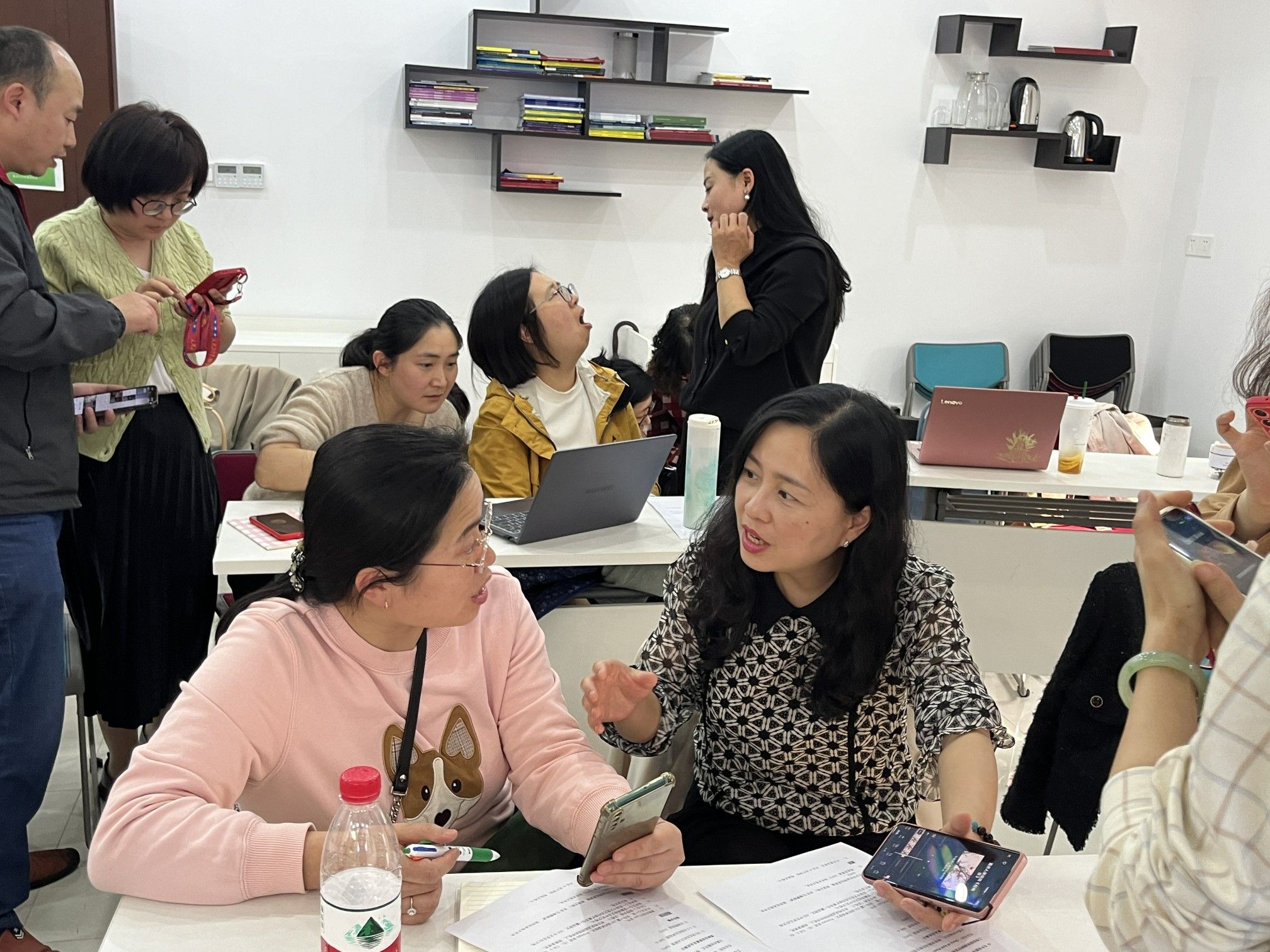 工作坊伊始,余渭深教授以“AI与外语教学——以学生AI短视频制作为例”为主题,深入剖析了AI技术在提升学生外语学习体验方面的巨大潜力,并通过生动的案例,展示了如何利用文心一言、度加、剪映等AI平台,辅助创作具有个性化特色的外语短视频。这些视频不仅锻炼了学生的语言运用能力,还通过创新的方式激发了他们的学习兴趣。在实操环节中,老师们纷纷动手尝试使用这些AI工具,进行视频剪辑、配音、字幕添加等操作。大家互相交流心得,分享经验,现场氛围热烈而融洽。通过实际操作,老师们对AI技术在外语教学中的应用有了更深刻的认识和理解。