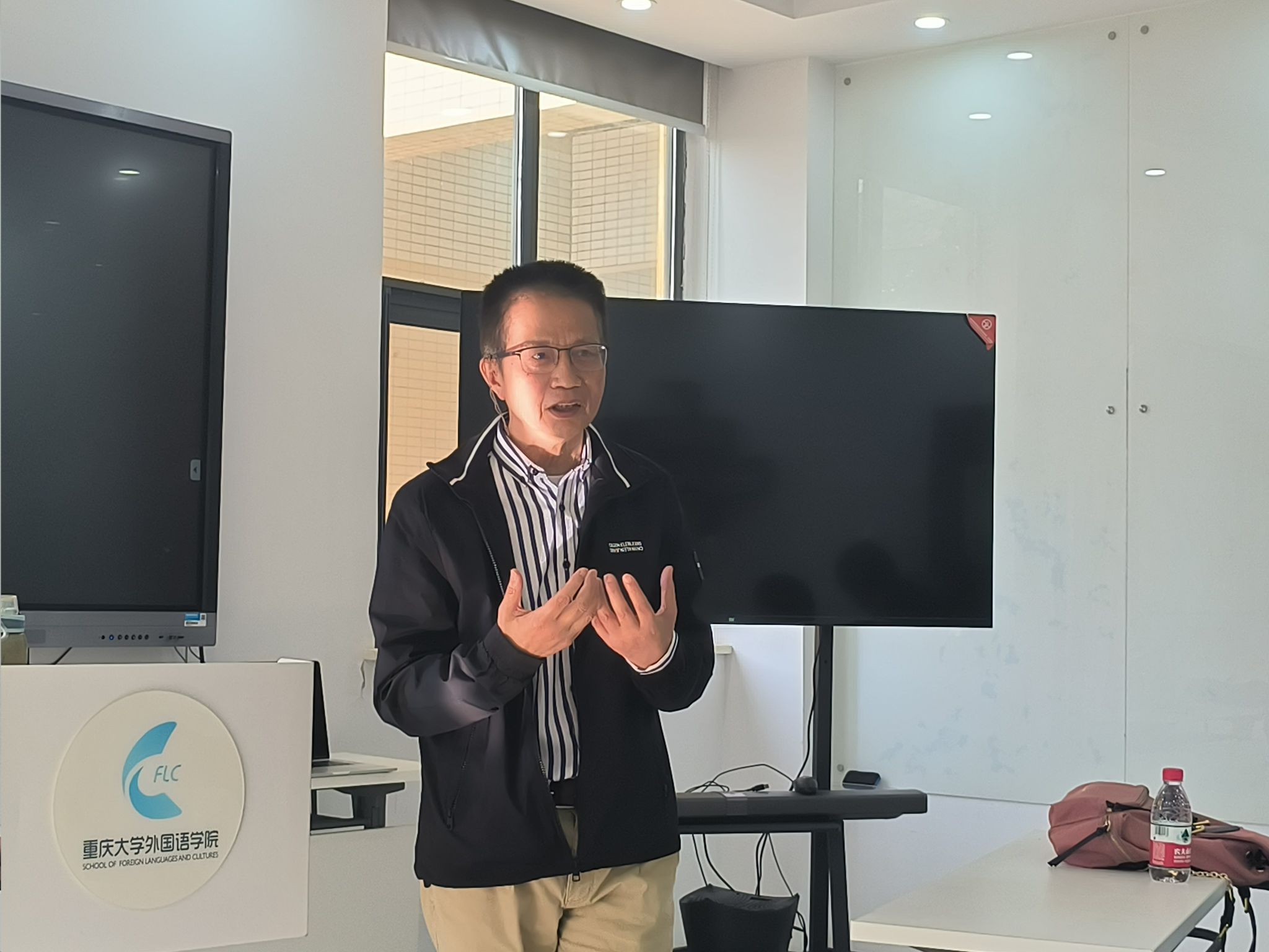 3月28日,重庆大学外国语学院大学外语教育中心创新课程组和重庆大学语言语音实验教学中心共同举办了AI赋能外语教学工作坊(第一期)。本次工作坊由余渭深教授和李小辉副教授主讲,由创新课程组主任郭丽静老师主持,吸引了近三十名教师踊跃参与,共同探讨AI技术在外语教学中的应用与前景。