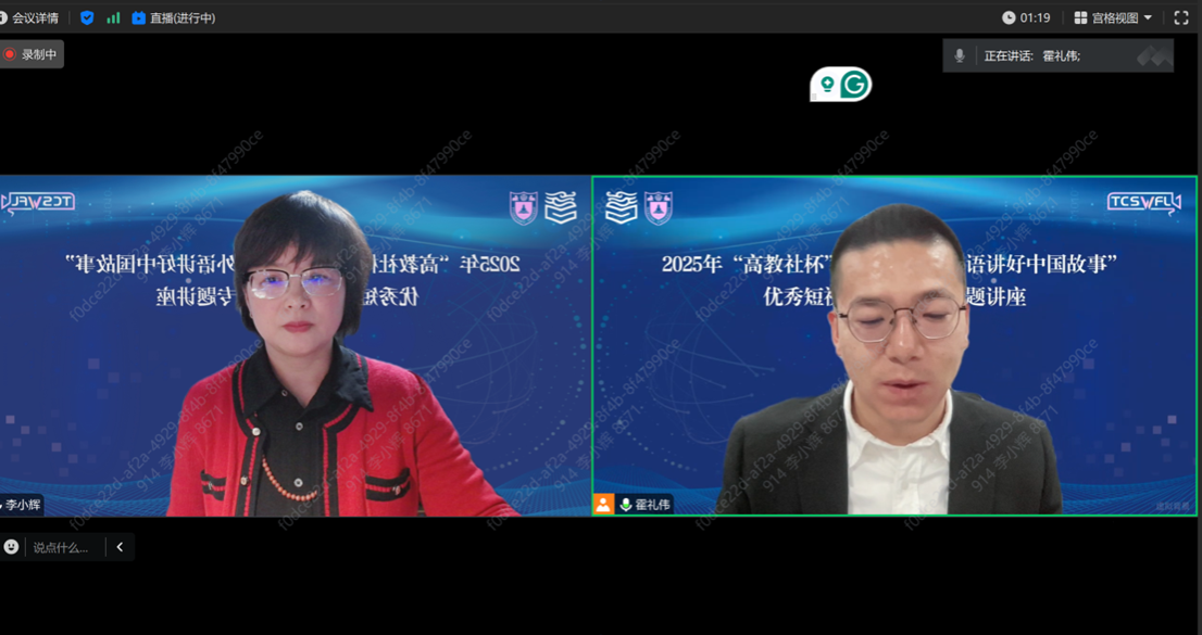 2025年3月3日,我院李小辉教授在“高教社杯”大学生“用外语讲好中国故事”优秀短视频作品征集活动的系列专题讲座中,作了题为“用外语讲好中国故事”的专题报告。此次活动由南京大学与高等教育出版社联合主办,旨在鼓励大学生通过短视频创作,展现新时代中国的变化与发展。
